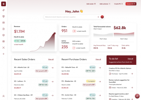 Anchr sits on top of the existing stack and turns it into a system of action. Rather than replacing the ERP, it embeds AI teammates across order intake, purchasing, inventory planning, invoicing, collections, and more. Workflows that previously required hours of manual intervention now execute automatically, with full context carried from one step to the next.